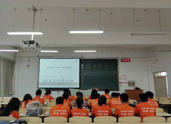 学生第一党支部组织全体党员在逸夫楼G202开展集中学习。