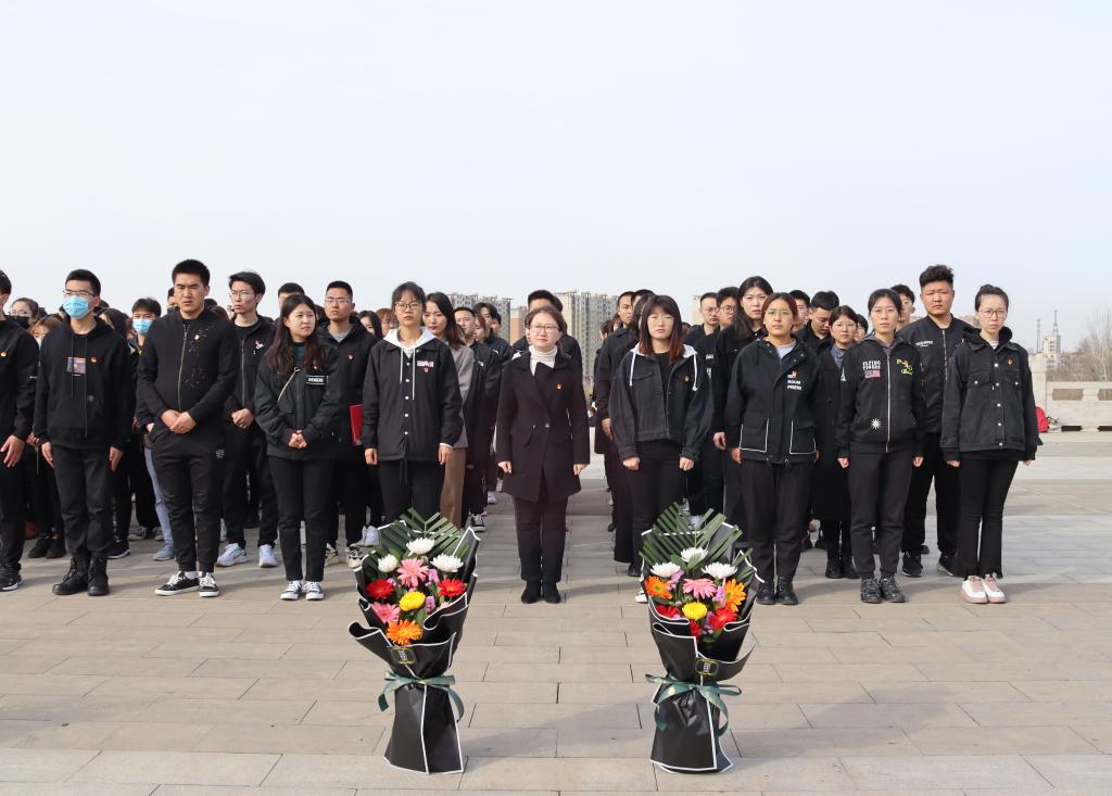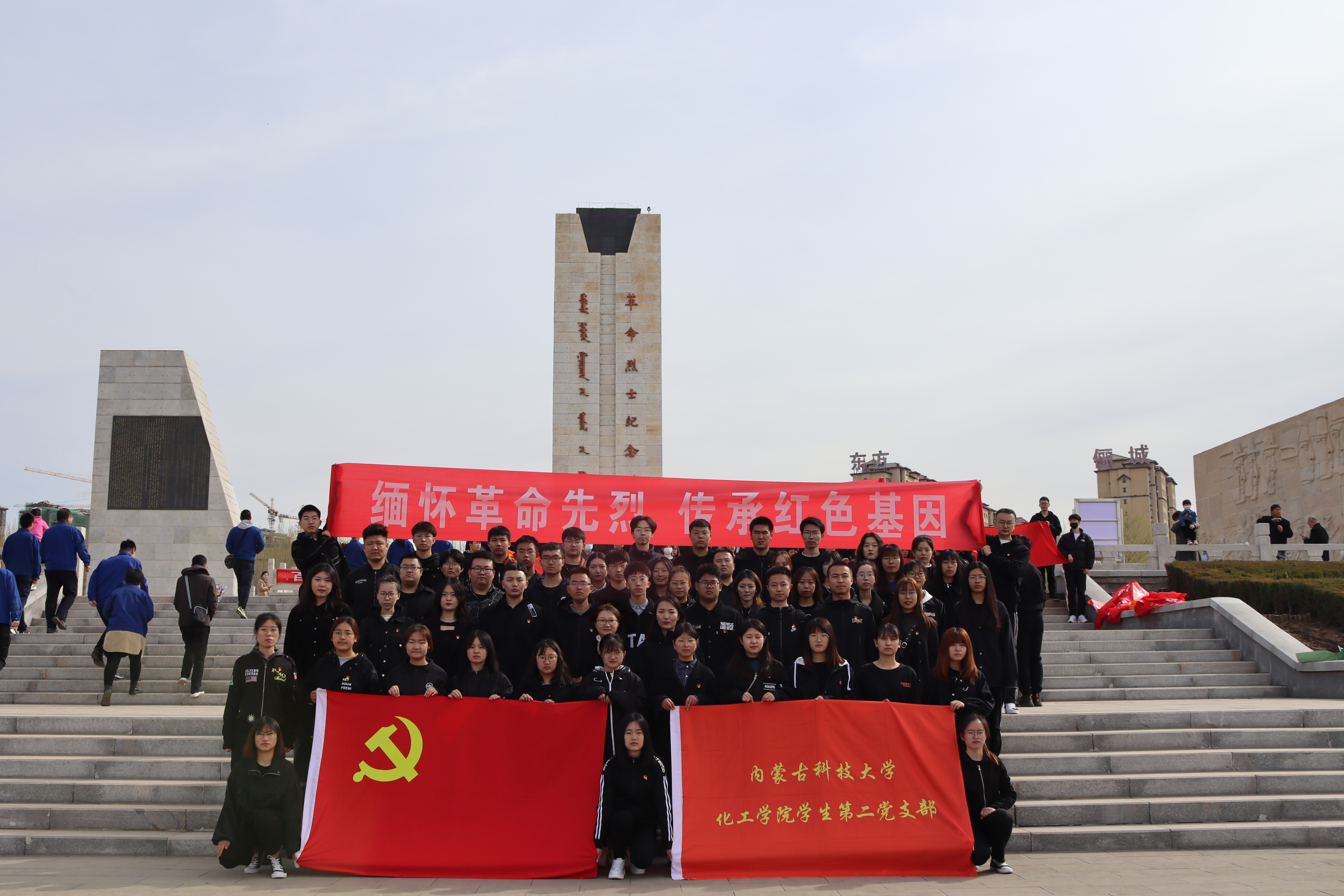 2021年4月3日早晨,化工FUN88 学生第二党支部组织师生党员及入党积极分子前往包头市井坪公园开展“缅怀革命先烈 传承红色基因”清明节祭奠革命烈士活动,支部师生党员及入党积极分子共计59人参加了本次祭奠活动。