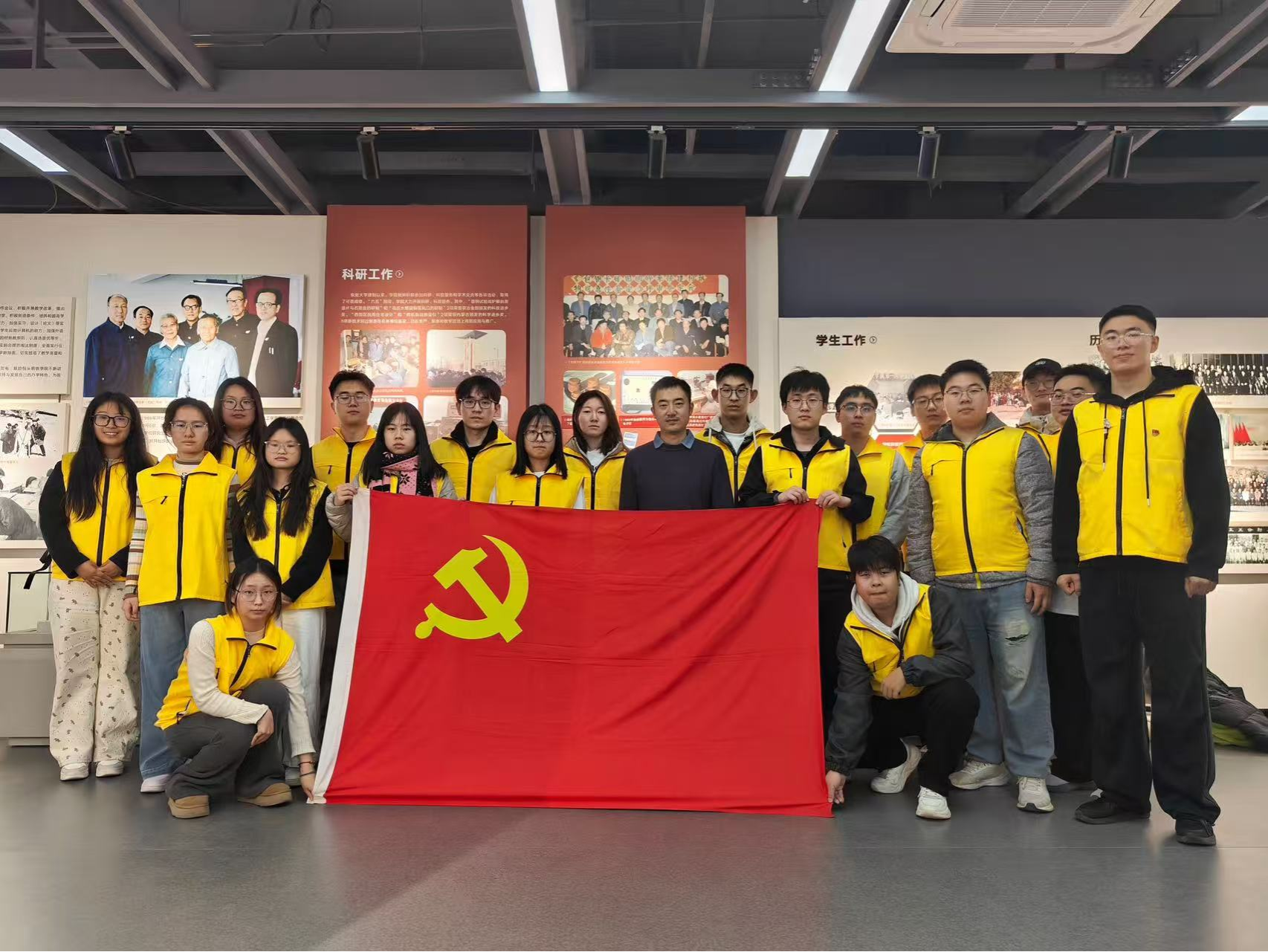 党委组织学生第一党支部、学生第二党支部及学生第三党支部党员共80人,于2025年11月13日下午开展参观校史馆主题党日活动。