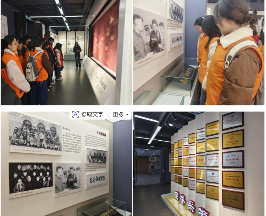 活动立足学校“钢铁摇篮”的历史定位,紧扣“百炼成钢”校训精神传承主线,通过沉浸式学习深化对校史脉络的认知。党员们在专业讲解员引导下,按“创业维艰”“改革奋进”“创新突破”三大主题展区结合校史馆数字展陈平台开展学习。党员们认真学习了学校自1956年建校以来与国家钢铁工业同频共振的发展历程,结合实物观察,研读毕业生校友事迹资料,在实物展陈与数字档案的双重印证中,全面了解了学校从包头钢铁工业学校到内蒙古科技大学的转型发展历程,以及在各个历史阶段为国家钢铁工业培养的高素质人才和做出的重要贡献,深刻感悟“自强不息、敢为人先”的校风内涵。
