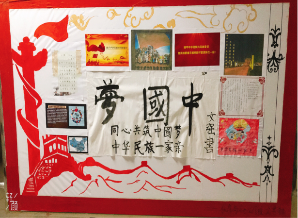 同学们的作品风格迥异,思路新奇。首先有“中国梦”的书法,作品苍劲有力,体现了大家同有一个中国梦,那就是使国家更加繁荣昌盛。映入眼帘的摄影作品是绚丽多彩的少数民族服装,不同的服装颜色和搭配代表着不同民族的历史和文化,也印证了五十六个民族团结一致、幸福安康的生活在这广阔的土地上。流光溢彩,繁荣盛世彰显我国的强大的经济实力,红色的灯光照耀着中间的大路,展现了我们国家未来的发展将会更加辉煌。