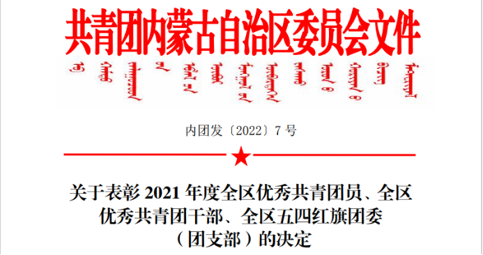 近日,共青团内蒙古自治区委员会下发了《关于表彰2021年度全区优秀共青团员、全区优秀共青团干部、全区五四红旗团委 (团支部)的决定》,乐天堂