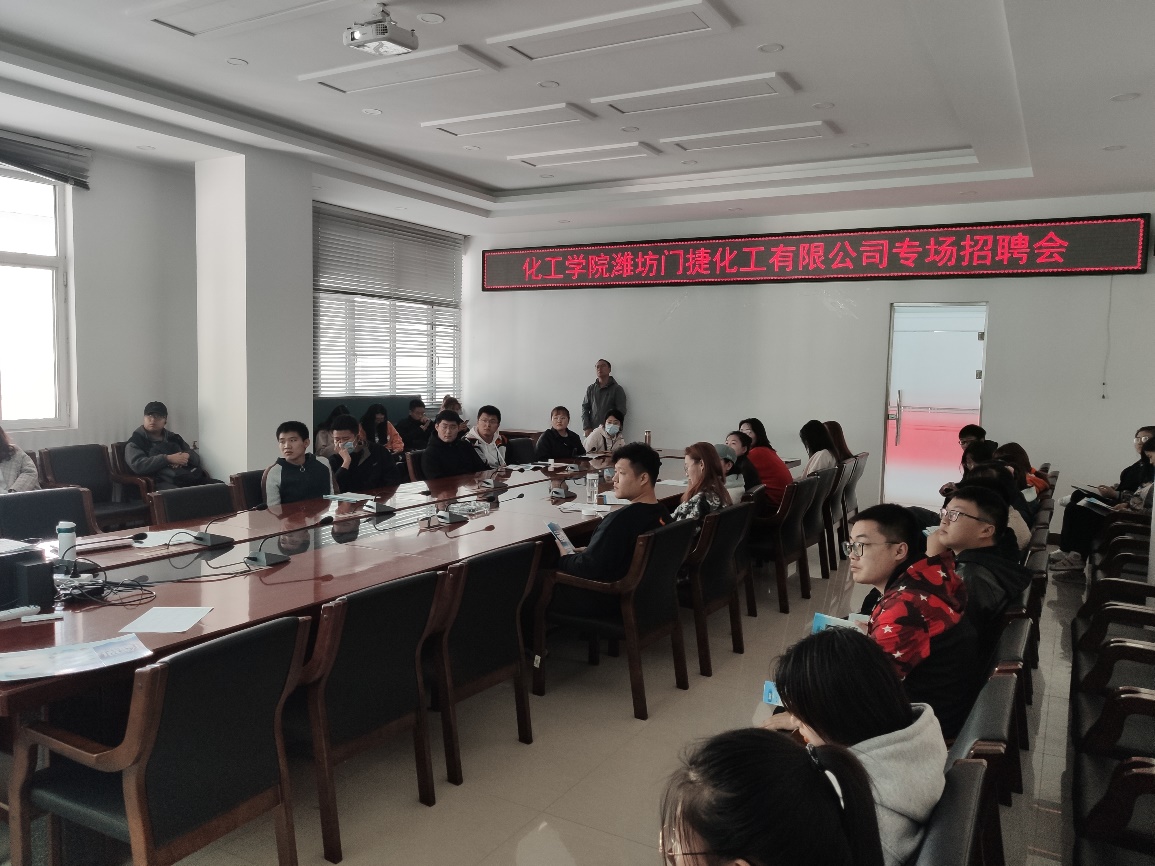 E202会议室,召开潍坊门捷化工有限公司专场招聘。FUN88