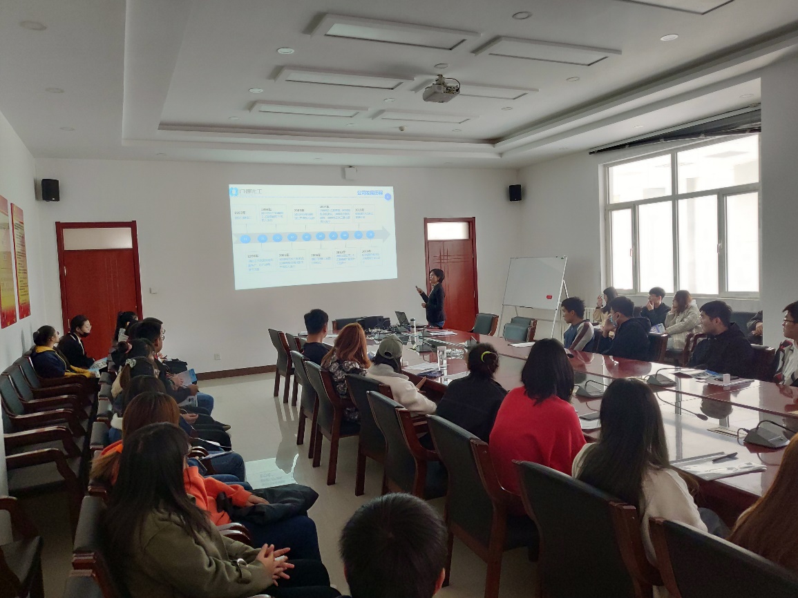 邀请,来校召开专场招聘会,招聘机电、化工、工程类相关专业40人。宣讲会上公司人事部经理通过企业宣传片及PPT介绍公司基本情况,并回答同学们关心的问题,收取简历后现场进行面试。