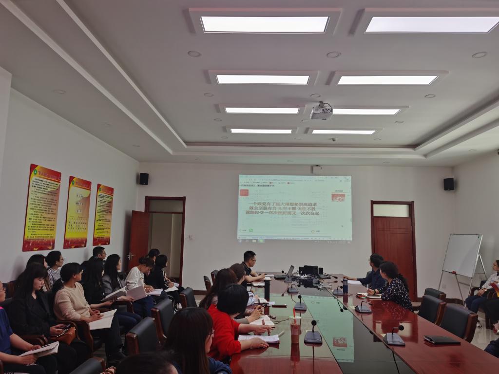 在逸夫楼E202会议室开展教职工政治理论学习。全体教职工参加学习。本次学习内容为:《一百堂党史课》。