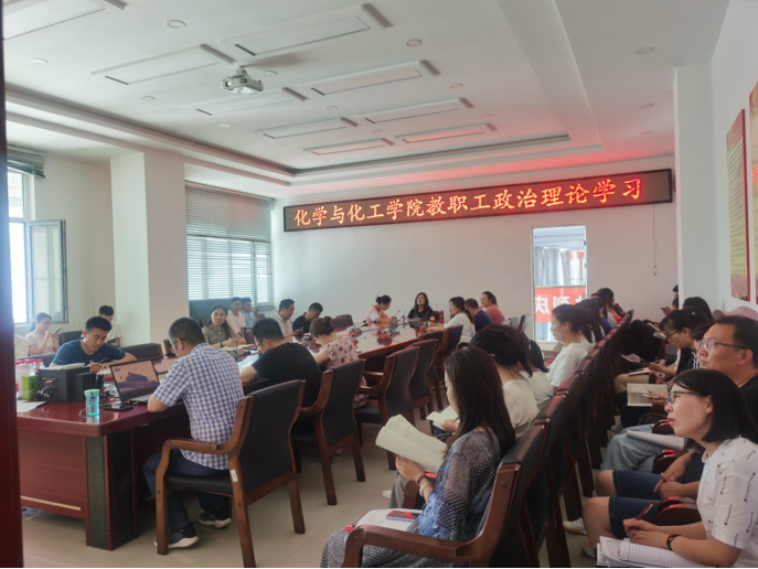 在逸夫楼E202会议室开展教职工政治理论学习。全体教职工参加学习。