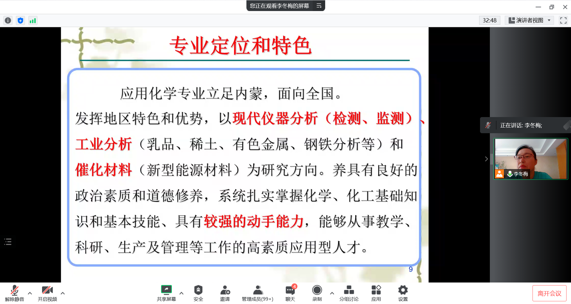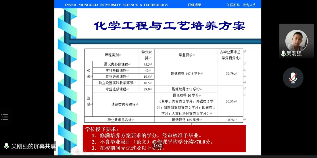 随后,教学办负责人李敏以学校教育教学管理制度为主题,围绕《内蒙古科技大学学生学籍管理规定》《内蒙古科技大学学士学位授予实施细则》《内蒙古科技大学学生考试违纪处理细则》中重点内容进行了解读、演示教务系统的操作方法,使新生熟知学校教育教学管理规定,增强规则意识,了解办事流程。