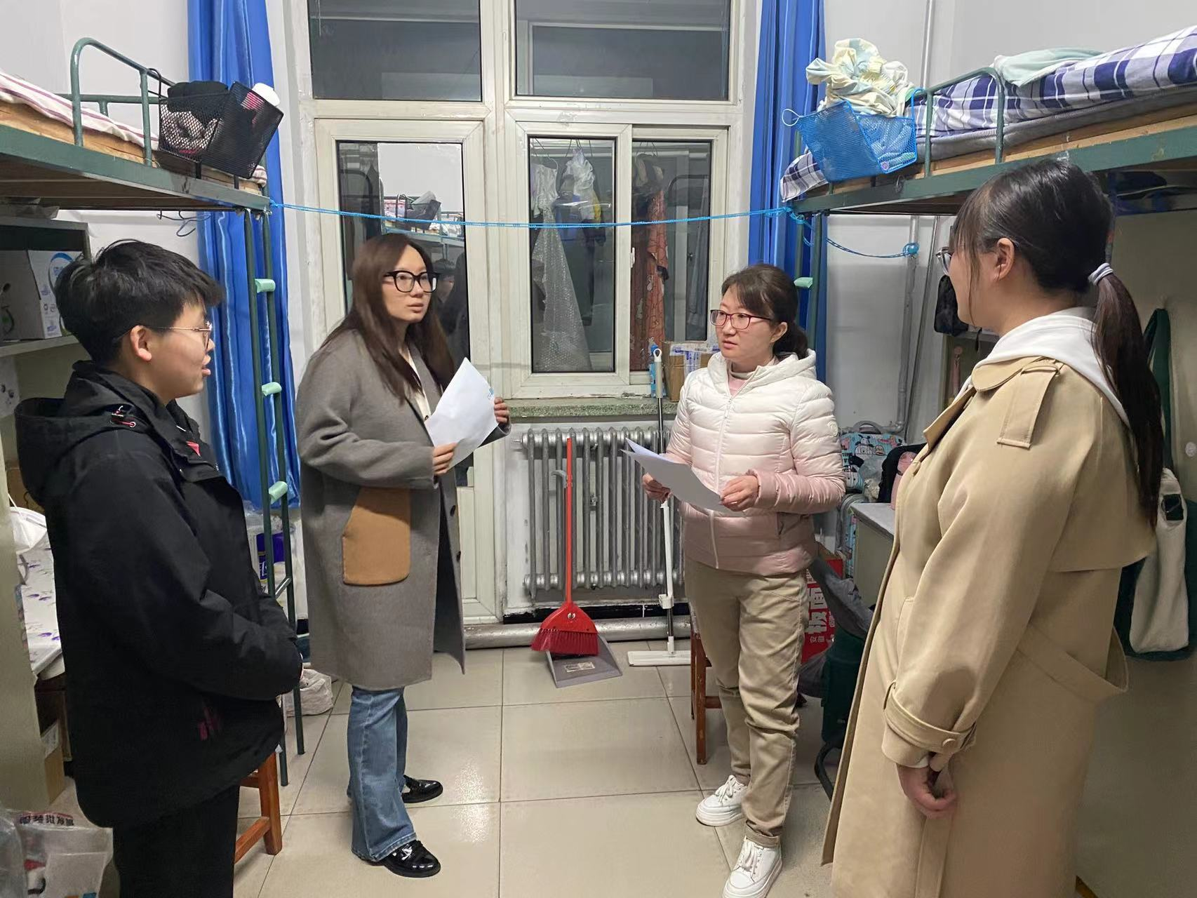 党委副书记副院长冀虹、研究生班主任张书恒深入10#、11#、12#、13#、25#宿舍楼,对FUN88