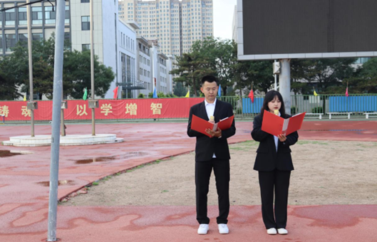 国旗护卫队的升旗手们护卫着鲜艳的五星红旗入场,伴随着《义勇军进行曲》的响起,全体师生集体行注目礼并共唱国歌,庄严肃穆。鲜艳的五星红旗冉冉升起,给予了每个人以温暖与力量。随后两组学生党员分别做了题为《忆党恩、颂党恩》、《奋斗正青春》的国旗下演讲,号召全体师生感恩党的培养,感恩国家的栽培,奋斗不息,青春无悔。