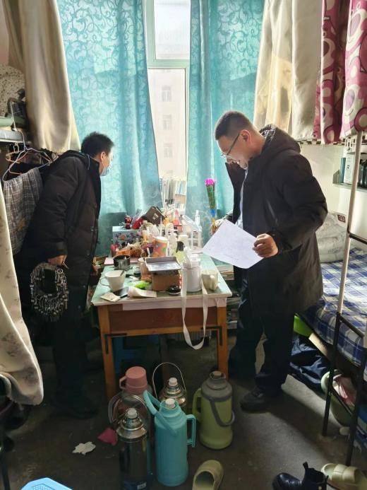 本次检查对5#、26#共466个宿舍进行了逐一走访,对两个楼宇弱电室、消防管道、逃生通道等进行了排查。共排查出隐患13项,其中包括宿舍存放打火机、白酒、电锅,宿舍插排未拔,小组没收相关物品,并将存在的消防管道生锈、多宿舍使用一个空气开关等情况上报保卫处。坚持立查立改、边查边改,对排查整治期间发现的问题隐患分级建立台账清单,逐项明确问题隐患、治理措施、完成时限、责任人等内容,确保学生宿舍假期安全。