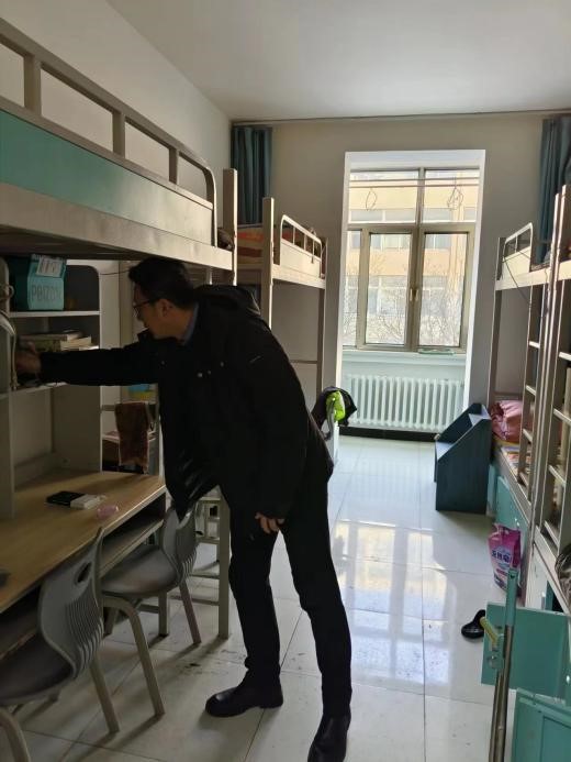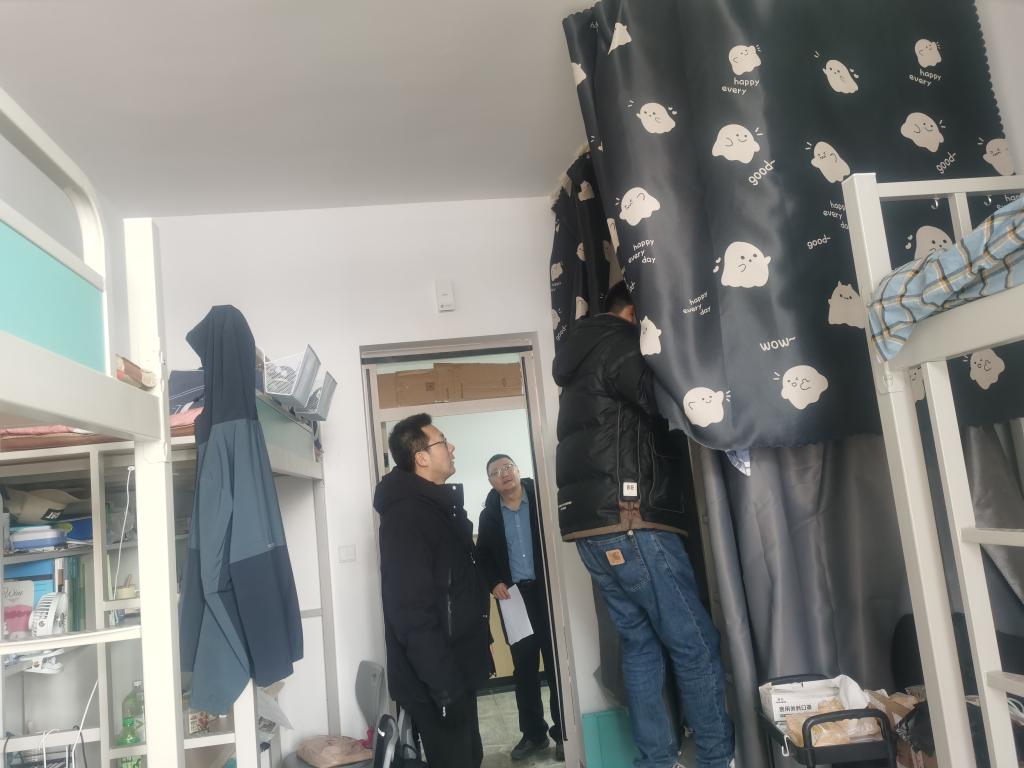 党委书记罗强、部分班主任与辅导员对原5号、26号学生公寓开展宿舍安全隐患排查工作。