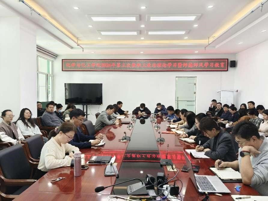 在逸夫楼E202会议室开展2024年第三次教职工政治理论学习暨师德师风学习教育,全院教职工参加。