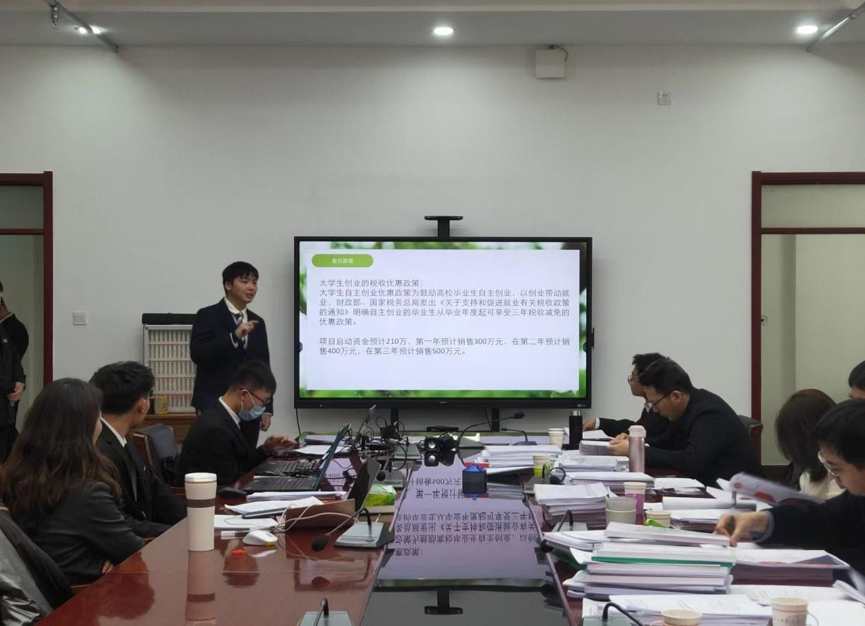 32份重点作品进行初审,并邀请第八届、第九届互联网+大学生创新创业大赛国奖项目指导老师对参赛作品及答辩环节进行系统指导。答辩会上,各项目汇报人从项目概要、市场痛点、组织优势、运营模式、社会价值等方面进行路演。在各个团队路演结束后,评委对每个团队的参赛作品进行分析点评,指出存在的问题及可以改进加强的地方,并提出建设性意见。