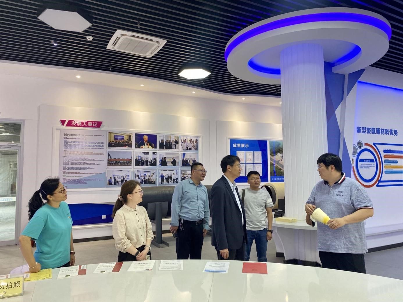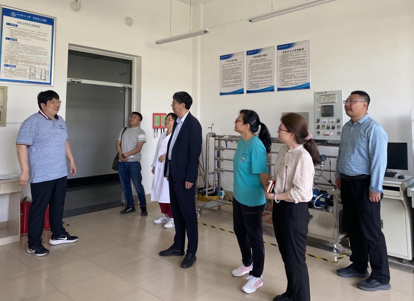 一行参观了化学化工实验实训中心、聚氨酯研究院、清洁化工技术研究院,双方就专业实验室建设、社会服务等方面进行交流。