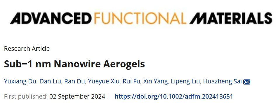 相关工作以“Sub−1 nm nanowire aerogels”为题发表在国际知名学术期刊《Advanced Functional Materials》上,乐天堂