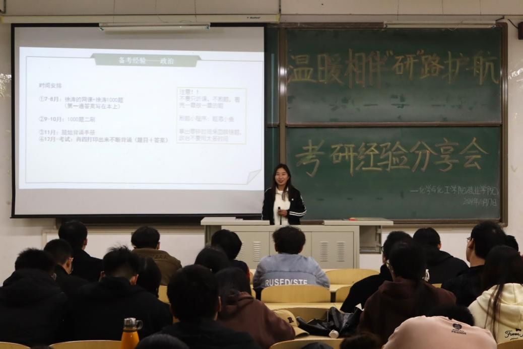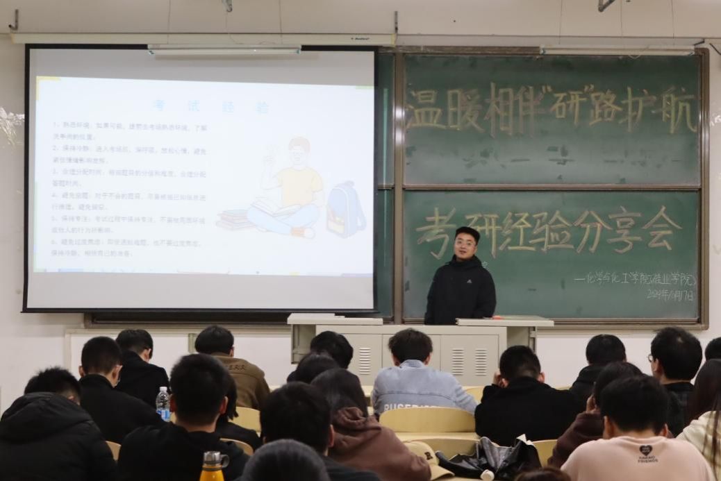 分享会上,5位优秀学子从自身考研经历出发,围绕院校和专业选择、备考规划、学习方法、时间安排等方面展开分享。他们着重强调了考研过程中心态的重要性,提醒同学们用平和的心态对待每一个复习阶段和每一门考试,努力夯实基础,保持自己的学习节奏。