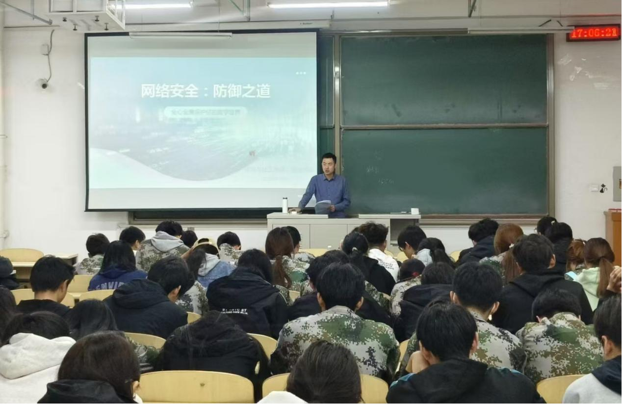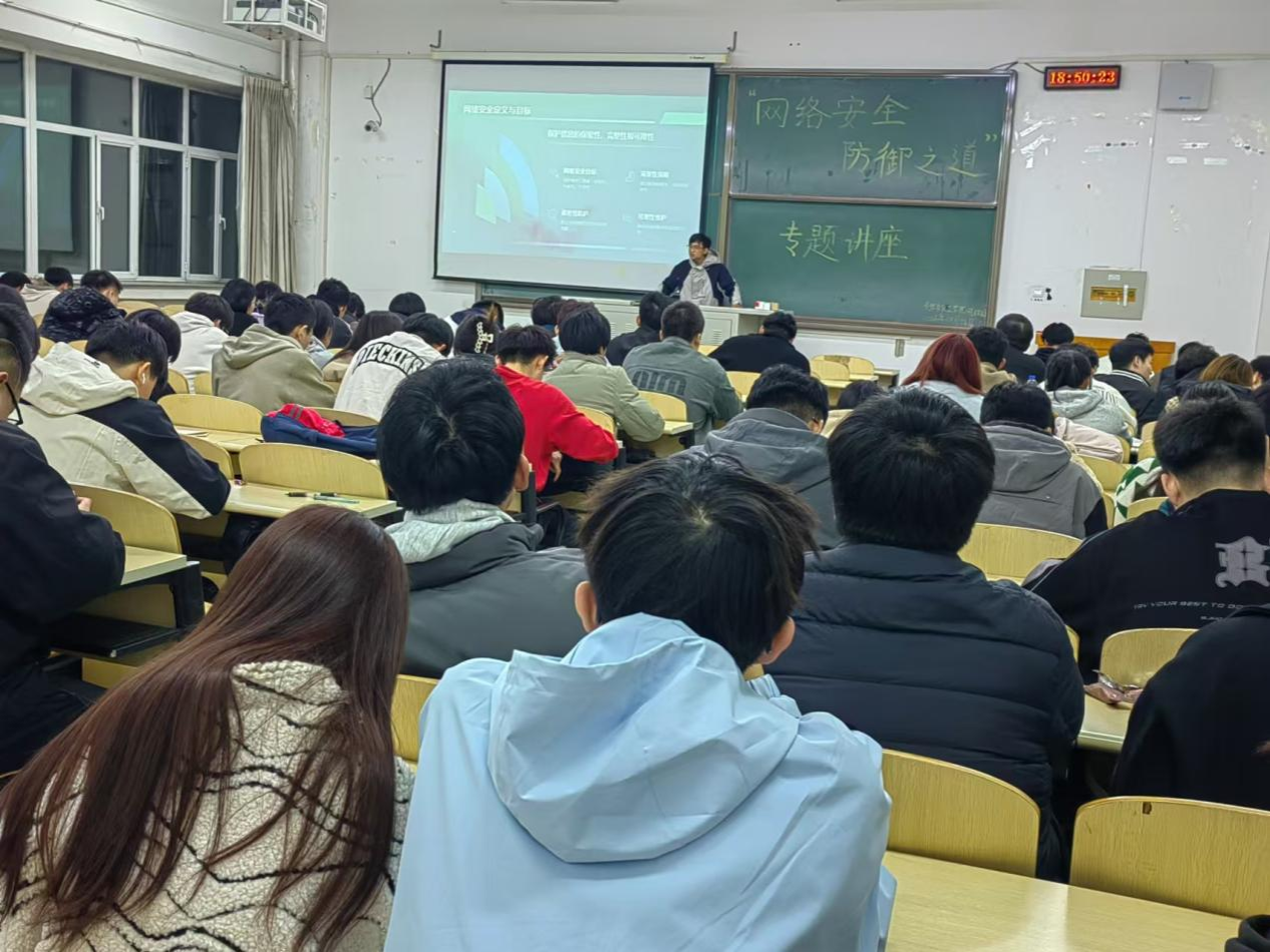 讲座围绕网络安全基础知识、常见的网络安全威胁和网络安全保护措施等三个方面内容,结合学生日常生活中常出现的网络安全风险案例,重点介绍了应对网络攻击、主动进行安全防御的举措。提醒同学们面对日益复杂的网络信息安全风险,网络安全防御不能仅是被动防御,更需要掌握威胁情报、做好积极防范。