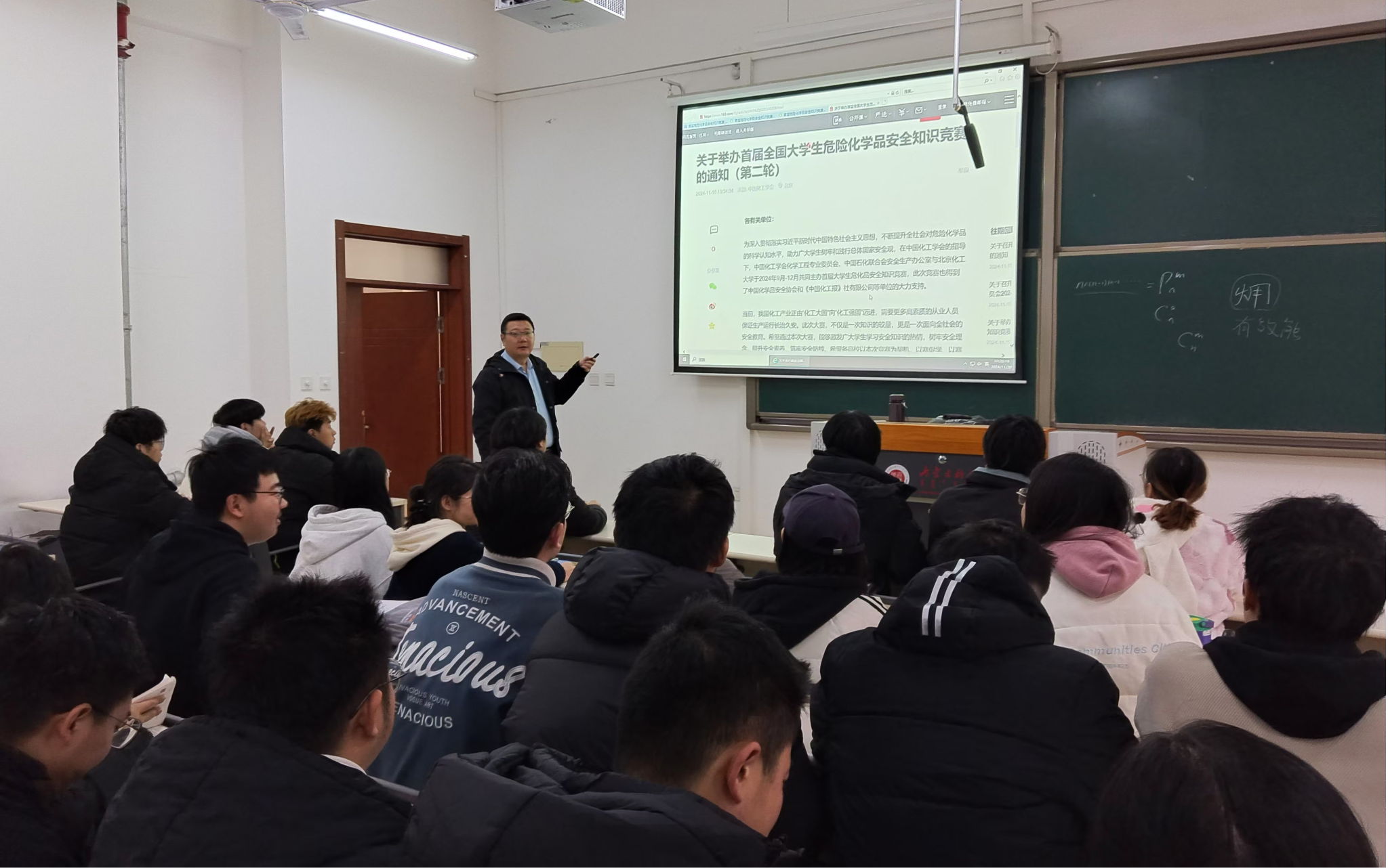 在明德楼H309举办首届全国大学生危险化学品安全知识竞赛宣讲会。