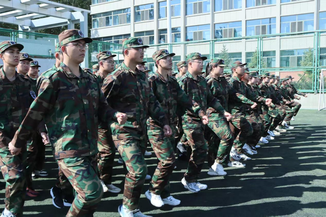 “一二一!一二三四!”口号伴步伐,奏响激昂曲。教官精授动作,校准摆臂、丈量间距,学员专注训练。