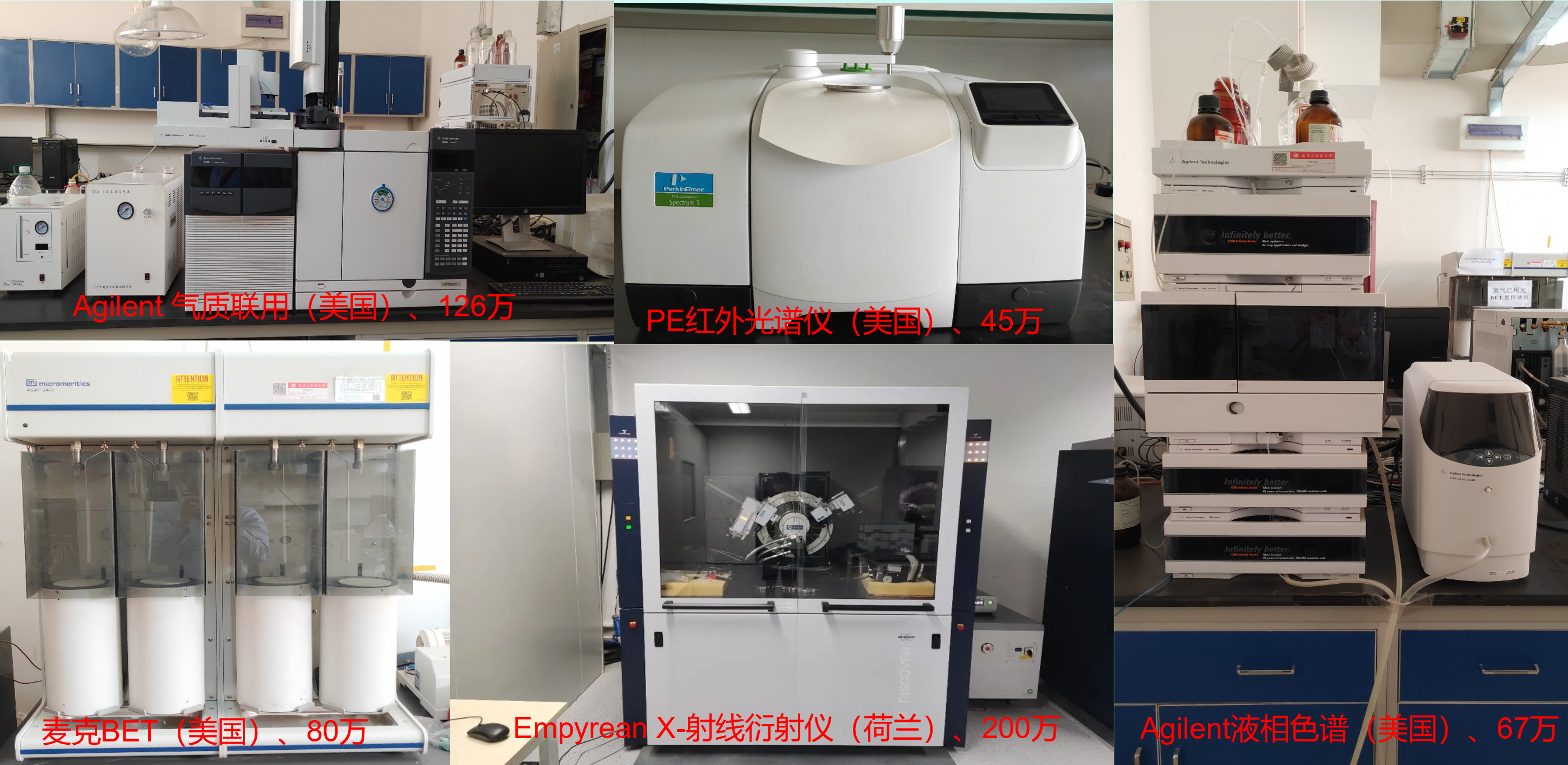 、化学工程与工艺等学科专业建设以及地区经济发展。分析测试平台占地面积300多平方米,平台拥有手套箱工作站(MB-Unilab Pro)、Autolab电化学工作站、傅立叶变换红外光谱仪(PerkinElmer Spectrum 3)、荧光光谱仪(PerkinElmer LS55)、紫外可见近红外分光光度计(Cray5000)、X射线衍射(Empyrean XRD)、氮吸附比表面积分析仪(ASAP 2460)、原子吸收光谱仪(ZCA-1000)、差示扫描量热仪(PerkinElmer DSC6000)、高效液相色谱(Agilent 1260 Infinity)、气质联用仪(Agilent 7890B-7000C GC-MS System)、高速冷冻离心机、超临界CO2干燥萃取装置(自主研发)等多种大型仪器设备,价值1000多万元。可满足新能源材料的结构表征、物理性能、化学性能测试